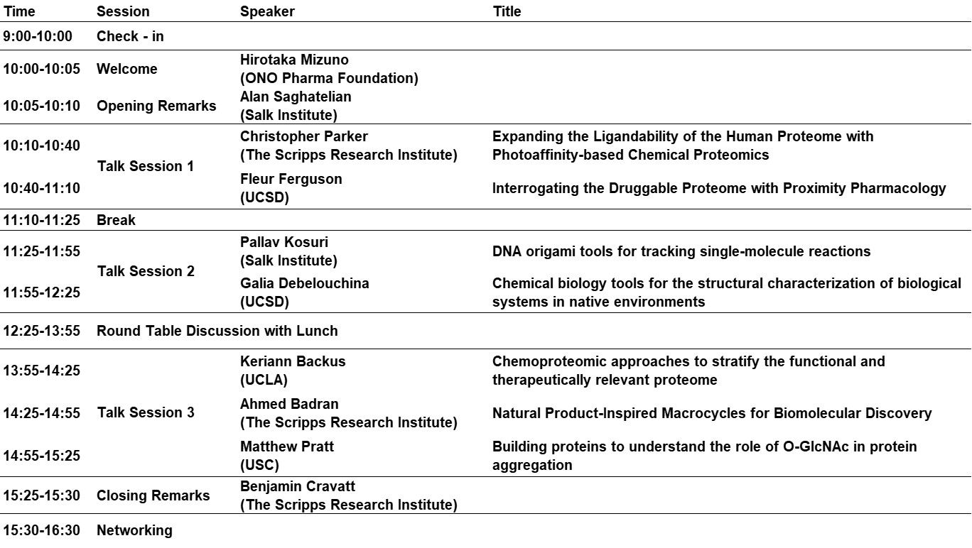 Discover groundbreaking research and network with leading experts in Southern California's Chemical Biology community. This event is co-organized by Salk Institute and Ono Pharma Foundation.